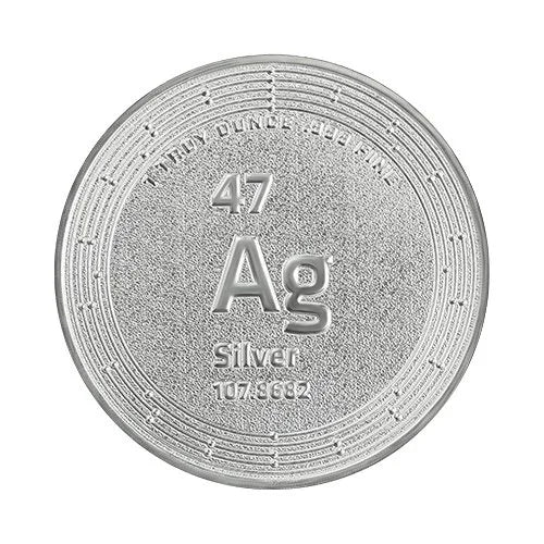 The obverse shows the company name and logo while the revetrse shows the periodic number and element symbol for silver.